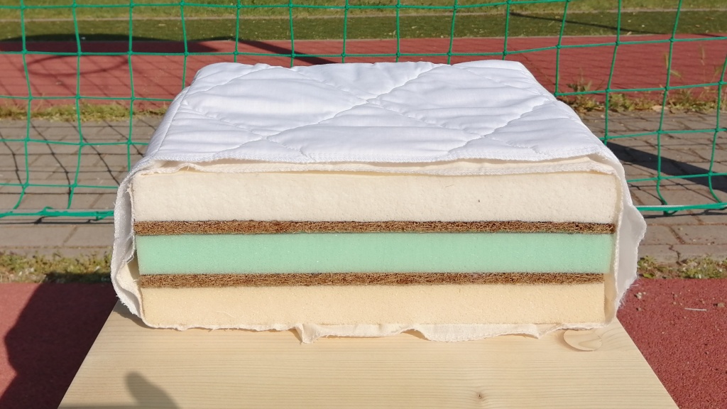 Összetétele: latex (80kg/m3), rétegelt kókusz (70kg/m3), normál hab (35kg/m3), rétegelt kókusz (70kg/m3), hideghab (40kg/m3)